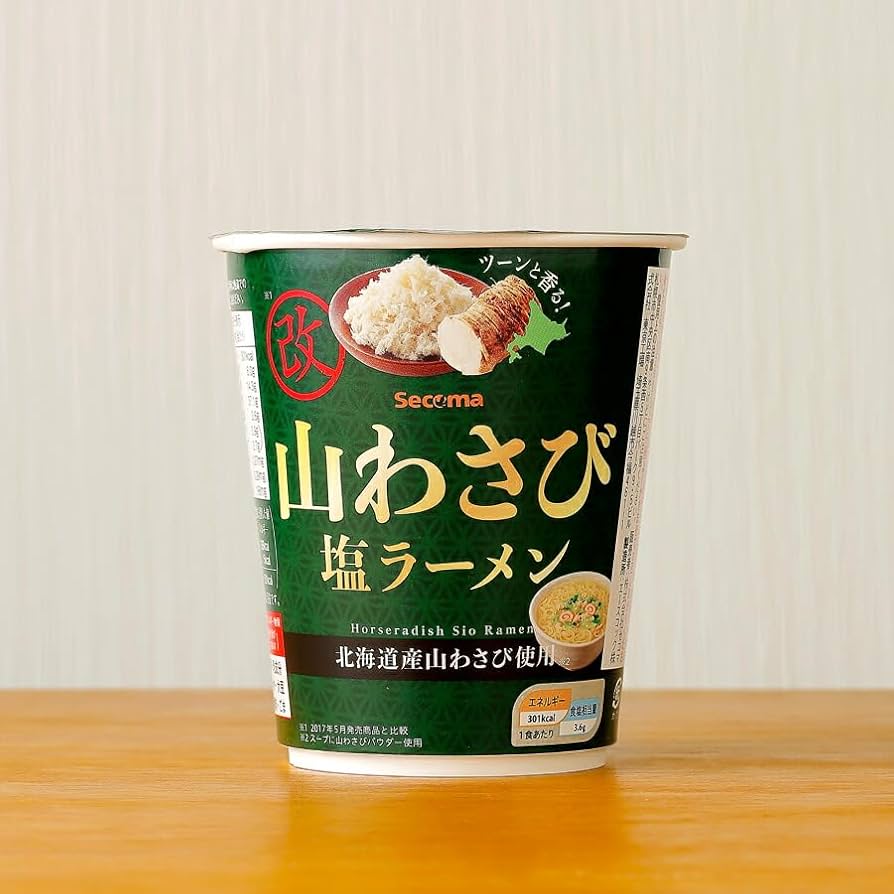 北海道を拠点とするセイコーマートが販売する山わさび塩ラーメン改は、北海道産の山わさびを使用した画期的なカップラーメンです。2017年から販売されていた山わさび塩ラーメンがリニューアルされ、パッケージには「刺激up!」と大きく記されており、従来品よりもさらに強烈な刺激を売りにしています。