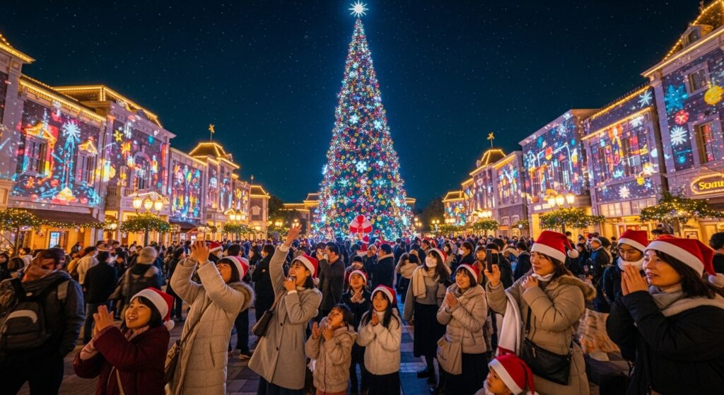 クリスマスシーズンは、公式の開園時間よりも早く開園することがあるため、公式サイトで開園時間を確認し、開園の30分から1時間前には到着しておくことをおすすめします。特にクリスマス当日やクリスマス・イブなどの繁忙日は、開園前から長い行列ができるため、早朝6時30分頃には到着しておくと、スムーズに入場できる可能性が高まります。