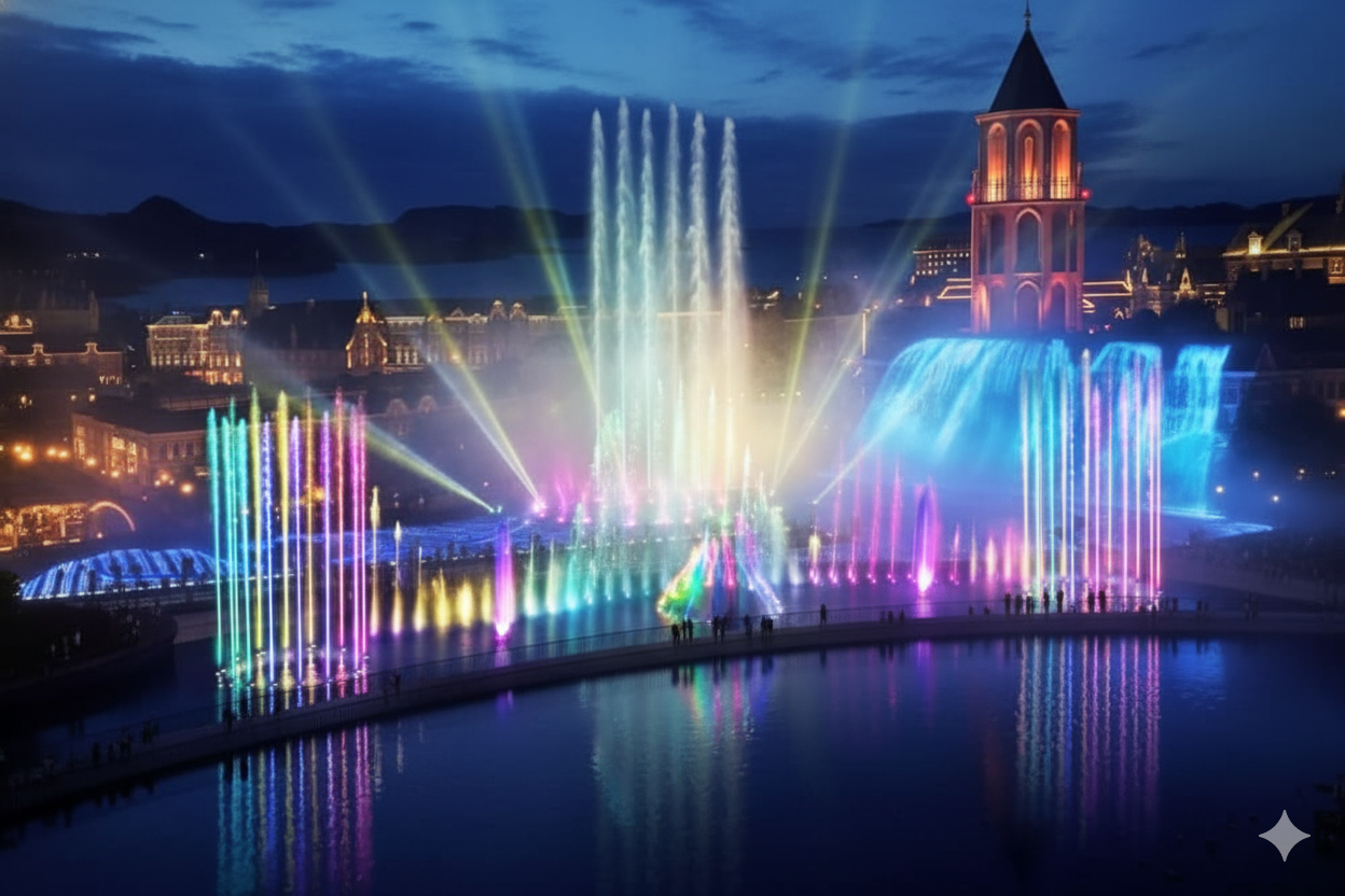 水、光、音楽が一体となって織りなす圧倒的なパフォーマンスは、訪問者に忘れられない体験を提供します。噴水が音楽のリズムに合わせて舞う様子は、まるで水が生きているかのようで、見る者を魅了します。特にクライマックスでは、複数の噴水が一斉に高く噴き上がり、光と音楽が最高潮に達します。この瞬間は、多くの来場者が息をのむほどの迫力と美しさです。