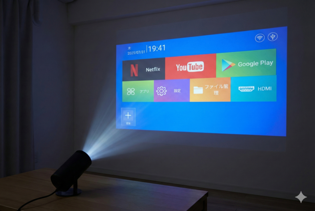 しかし、3COINSプロジェクターはAndroid搭載で本体内でアプリが動くため、スマホを経由せずに本体アプリで視聴すればこの問題は回避できます。本体アプリの操作性が気になる場合や、本体アプリが対応していないサービスを視聴したい場合は、HDMIポートにFire TV StickやChromecast with Google TVを接続するのが最も確実で快適な解決策となります。