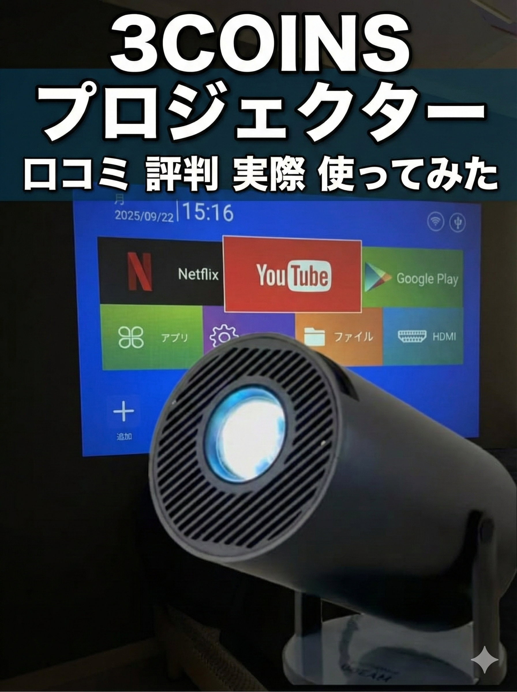 3COINSのプロジェクターは、税込1万1000円という価格でAndroid OS搭載・天井投影対応を実現した、コストパフォーマンス抜群のエントリーモデルです。口コミや評判では「コスパ最強」「天井投影が最高」という肯定的な声が多い一方、「ファンの音がうるさい」「明るい部屋では見えにくい」という注意点も指摘されています。実際に使ってみた体験としては、暗い部屋であれば十分に鮮明な映像を楽しめ、特に寝室での天井投影は没入感のある視聴体験を提供してくれます。