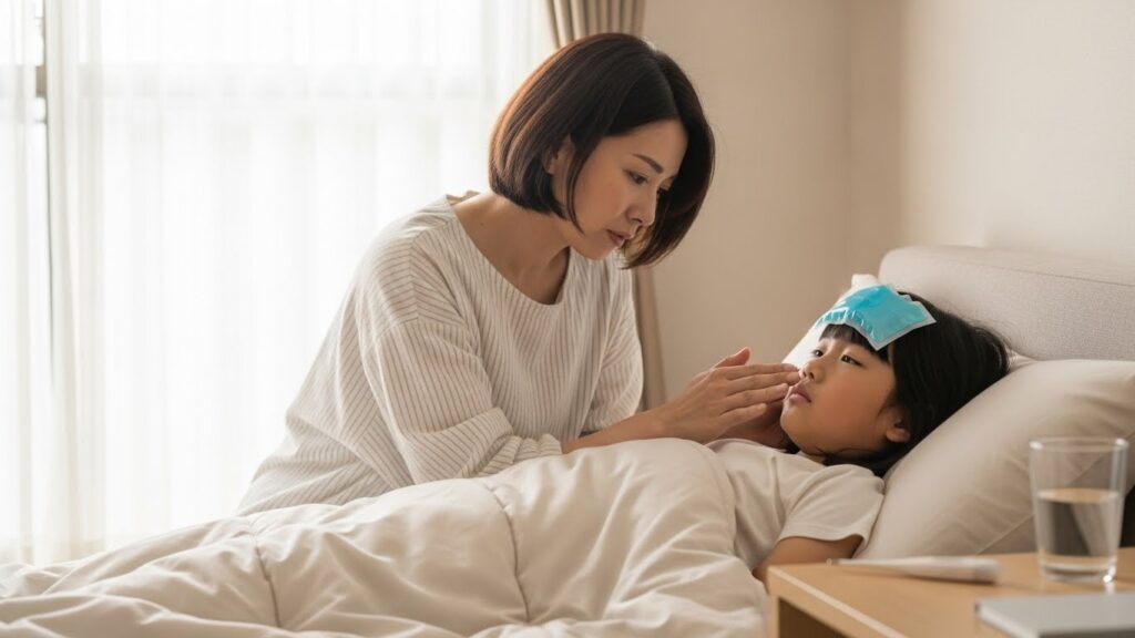 ここで重要かつ冷静な事実を確認しておく必要があります。冷却シート自体には、病気の熱を下げる(解熱)医学的効果はありません。小児科医や専門家は、額を冷やすことはあくまで「不快感の緩和」「安楽性の提供」が目的であり、脳の温度を下げたりウイルスを退治したりする効果はないと指摘しています。太い血管が通る脇の下や首筋を冷やすことで全身の体温を下げる補助にはなりますが、額に貼る小さなシートだけで解熱を期待することはできません。