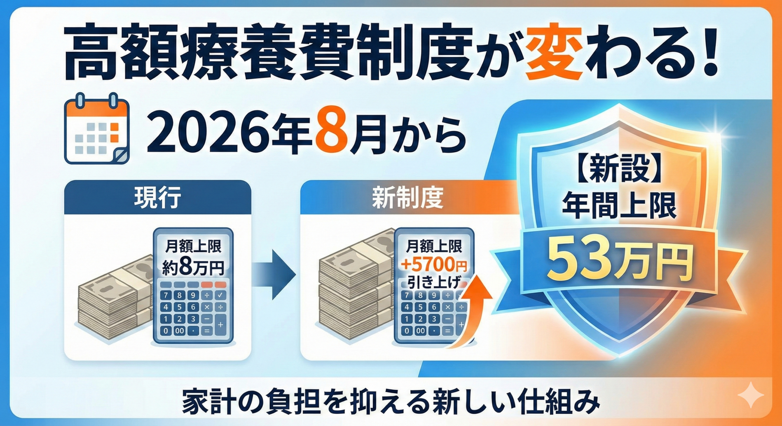 高額療養費制度とは、医療費の自己負担額が一定の上限を超えた場合に、超過分が払い戻される制度です。これまでは月単位での上限額のみが設定されていましたが、2026年8月からは新たに「年間上限」という概念が導入されることになります。この制度変更は、急速な少子高齢化と医療費の増大に対応し、現役世代と高齢世代の負担の公平性を確保するために行われるものです。本記事では、年間上限53万円の詳細な仕組みから、所得区分ごとの変更点、高齢者への影響、そして家計への備えまで、2026年8月に施行される高額療養費制度改革の全容について詳しく解説します。