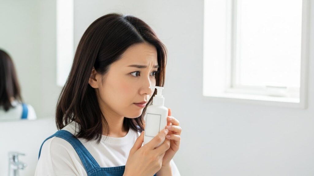 製品の確認方法としては、まず清潔な手の甲に少量出し、鼻を近づけて臭いを確認します。本来の「無臭に近い」または「微かな柑橘・フローラル系」の香りではなく、「酸っぱい」「銀杏臭い」「古油臭い」と感じたら異常です。また、ボトルの底面や背面に印字されている英数字のコード(ロット番号)を確認し、SNS等で情報共有されている「臭いロット」と一致するか確認するのも一つの手段ですが、自身の嗅覚による判断を優先してください。
