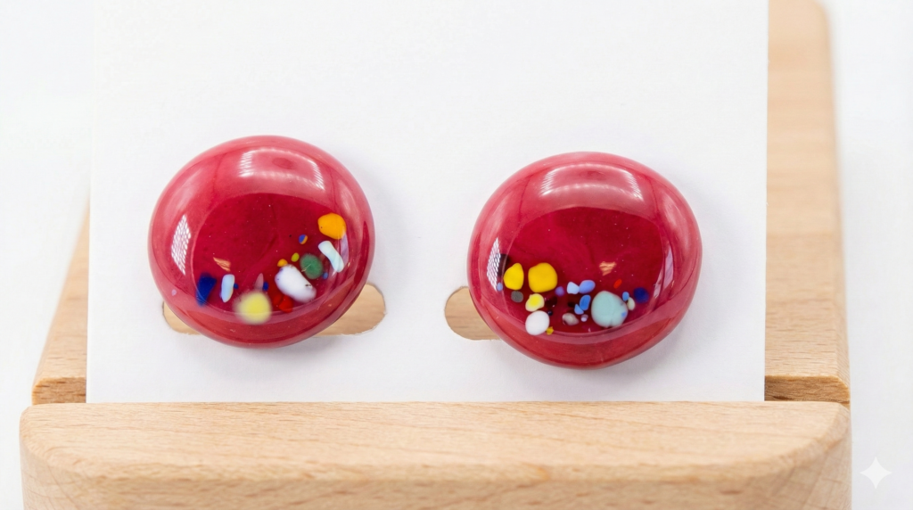 商品名の通り、光を受けるとキラキラと輝くテクスチャーや、色が混ざり合うマーブル模様が特徴です。七宝焼特有の「ガラスの艶」と、焼き物ならではの「一点ごとの個体差」が、既製品にはない温かみを醸し出しています。佳子さまが選ばれたのは、ワンピースの色に合わせた鮮やかなピンク色でした。七宝焼は釉薬の調合によって無限の色を表現できますが、この鮮やかなピンクの発色は、高度な技術とセンスの結晶といえます。