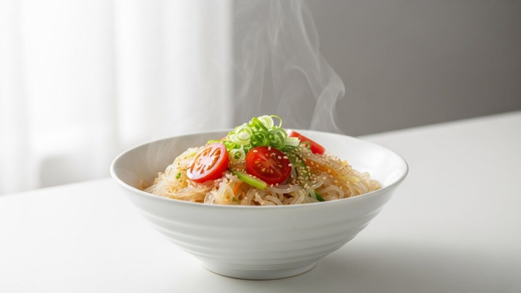 ラインナップも豊富で、うどん代わりの「平麺」、ラーメンやパスタ代わりの「丸麺」、そして日本蕎麦を模した「そば風麺」など形状のバリエーションがあります。平麺はクリームソースやカレーうどんのような粘度の高いスープとの絡みが良く、丸麺は炒め物やラーメンスープとの相性が抜群です。無味無臭に近い特性を持つため、どんな味付けにも染まる「キャンバス」のような存在として、幅広い料理に活用できます。