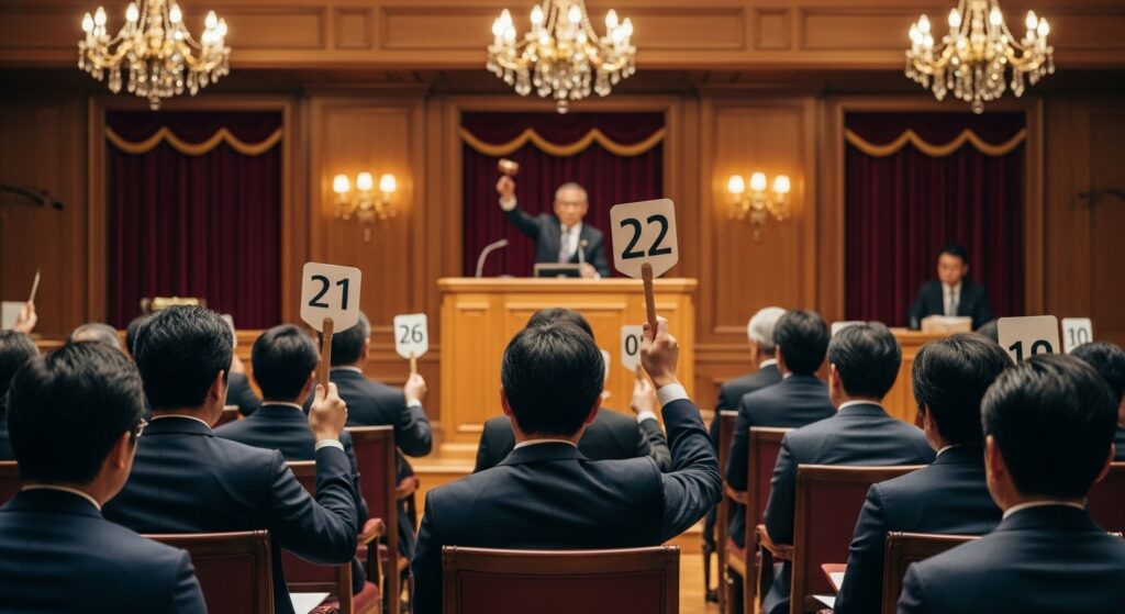 一次市場における価格は、アーティストのキャリアやサイズに基づいてギャラリーが決定する「定価」であり、ある意味で管理された価格です。一方、オークションは「欲しい人がいくら払えるか」という青天井の競争です。