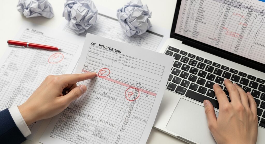確定申告において期限内に申告は完了したものの、AIの控除計算ミスや経費の過大計上により本来の税額よりも少ない金額で申告してしまった場合、過少申告加算税が課されます。この加算税は本税とは完全に別枠で追加徴収されます。さらに、この加算税を支払っても税務上は損金(経費)に算入することが認められないため、税引き後の純利益から直接支払わなければなりません。