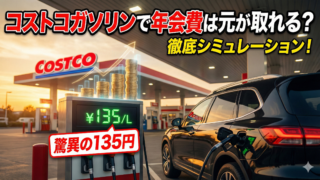 コストコのガソリンは周辺より10円から15円安く、年会費5,280円の元を取るには月約44リットル(月1回の満タン給油)で達成可能です。軽自動車・ミニバン・ハイオク車の車種別シミュレーションやグローバルカード1.5%還元の活用法、損益分岐距離の注意点まで、具体的な計算方法を詳しく解説します。