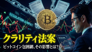 社会 クラリティ法案とは?内容やビットコインへの影響をわかりやすく解説 クラリティ法案とは、米国のデジタル資産規制を明確化する包括的な法案です。2025年7月に下院を通過し、SECとCFTCの管轄を整理することでビットコイン市場に大きな影響を与えています。本記事では法案の具体的な内容から成立見通し、EU・日本との規制比較まで詳しく解説します。 2026.03.19 社会