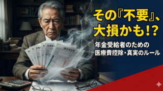 生活 年金受給者の医療費控除|確定申告不要制度の誤解で損していませんか? 年金受給者は確定申告不要制度を利用していても医療費控除を受ける権利があります。「申告不要=何もしなくてよい」は誤解です。本記事では、10万円神話の真実、5%ルール、住民税申告の重要性、社会保険料への影響まで、年金受給者が知るべき医療費控除の全てを解説します。 2026.01.14 生活
